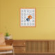Orangefarbene und blaue Gerbera Daisy Sitzkarte mit marineblau-blauem Text für Hochzeiten oder jede Veranstaltung. Achtzehn Tabellen mit acht Personen oder passen die Gästeliste Ihren Bedürfnissen an.