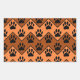 Niedliche Hundepfoten im Cartoon-Stil auf einem orangen und braunen Zickzack Muster. Das gesamte digitale Originalbild.
