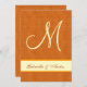 Dieses Orange- und Creme-Damast- und Monogramm-Design macht eine elegante Hochzeitseinladung. Fügen Sie Ihre Namen und Monogramm zur Vorderseite hinzu und personalisieren Sie mit Ihrem Text auf der Rückseite. Probieren Sie verschiedene Papiere aus, um zu sehen, welche Ihnen am besten gefällt, indem Sie auf "Einladungs-Optionen" und dann "Papiertyp" klicken. Genießen Sie Ihr ganz besonderes Aussehen!