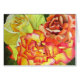 Von der originalen Aquarellmalerei von drei Rose von Sacha Grossel. Ein helles, farbenfrohes Design aus gelber Rose, orangefarbener Rose und hybrider Rosa und Gelb Rose in einem Trio im nahen Fokus, Makro-Stil. Ein detailliertes Design im botanischen Stil für Rose-Liebhaber überall.