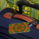 Orange- und grüne Kaleidoskop-Gepäckmarke Gepäckanhänger