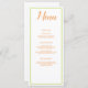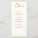 Die Rezeption ist in einem inspirierten, orangefarbenen und grünen Akzent gestaltet und bietet einen hübschen, weißen Hintergrund mit orangefarbenem Schriftart. Mit "Menu" oben geschrieben mit kursiv orangefarbenem Schriftart, werden alle Ihre Informationen in orange lesbarem Schriftart auf weißem Hintergrund gedruckt. Passen Sie an, wie Sie möchten.