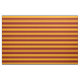 Dieses Design zeichnet sich durch ein Muster aus orangen und maronen Streifen aus.