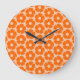 Orange und Peach Retro 60er Blumenmuster Große Wanduhr