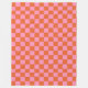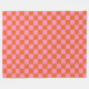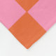 Abstrakte digitale Kunst von orangen und rosa Quadraten in einer karierten Formation.
