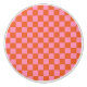 Abstrakte digitale Kunst von orangen und rosa Quadraten in einer karierten Formation.