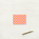Abstrakte digitale Kunst von orangen und rosa Quadraten in einer karierten Formation.