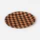 Abstrakte digitale Kunst von orangen und schwarzen Quadraten in einer karierten Formation.