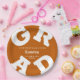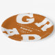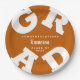 GRAD in fett-weißen Schriftzeichen rund um die Ränder dieser verbrannten orangefarbenen Graduierungsparty-Teller - erhältlich in 2 Größen. Herzlichen Glückwunsch über den Namen Ihres Absolventen und die Klasse von unten. Die perfekte Ergänzung zur Tischdekoration für kommende Partys. **TIPP: Klicken Sie auf "CUSTOMIZE", klicken Sie auf "COLOR" rechts oben; geben Sie Ihren Farbhex-Code in das Feld #xxxxxx ein, um Ihren Schulfarben zu entsprechen. SIEHE GANZE SAMMLUNG von vorgefertigten Farbkombinationen und mehr in unserem Shop.