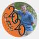 Klasse 2020 Abschluss Jahr Foto Aufkleber in orange, Bild perfekt für Favoriten und Einladungen. Laden Sie einen bevorzugten Snapshot Ihres Absolventen hoch und fügen Sie Text hinzu, falls gewünscht.