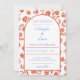 Mit diesem bezaubernden und vollständig anpassbaren Bogen- und Blume-Design, das sich durch die verschiedenen Farbtöne des orangefarbenen Verona-Sonnenuntergangs, Türkis und Königblau auszeichnet, verkünden Sie Ihren Hochzeitstag stilvoll. Die Rückseite ist mit einem aufregenden Bibelsong vom Solomon 2:10-13 geschmückt.