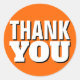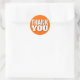 Ein großartiger Umschlag Aufkleber oder zu schmücken Gefälligkeitstaschen, um Zuhause mit Ihren Gästen zu versenden. Orange Danke Sticker hat einen orangefarbenen Hintergrund mit weißer Schrift.