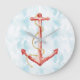 Orange Watercolor Anchor Große Wanduhr
