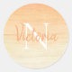 Orange Aquarellfarben Monogramm Name Classic Aufkleber. Monogramm Skript, Name, Typografie, Umschlag Aufkleber, beruflich persönlich. Pastellfarbene, orangefarbene Linien Mädchen weiblich. Für sie, Mädchen, Frauen.