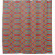 Dieser Duschvorhang hat ein Boho-Design von orangen und roten Wellen auf einem Feld von grau.