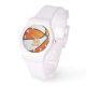 Diese personalisierte Basketballuhr zeigt das realistische Bild eines Basketballs, der sich abwechselnd orange und weiß mit überlappenden Ziffernzahlen wiederholt hat - einfach den Namen und die Trikotnummer des Athleten anpassen - von katz_d_zynes
