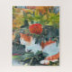 Orange/weiße Katze unter einem blühenden Busch Puzzle