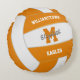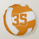 Dieses coole Volleyball-Rundkissenspiel in Mannschaftsfarben zeichnet sich durch ein realistisch aussehendes Orange-Weiß-Volleyball aus, auf dem man den Namen des Spielers, Monogramm- oder Variantenbuchstaben, Mannschafts- und Maskottenname auf der Vorderseite und Trikotnummer auf der Rückseite - von katz_d_zynes