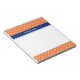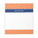 Personalisiertes orangefarbenes und weißes Polka-Punktmuster mit königsblauem Akzent Notizblock. Kleine weiße Polka-Punkte auf Orange und in der Mitte ist eine königsblaue Band, in die man seinen individuelle Name setzen kann.
