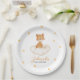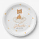 Bezaubernde Baby Fuchs Paper Teller mit einem traumhaften Design eines whimsical Aquarellfuchs, der auf einer flauschigen Wolke hoch oben auf einer zarten Wolke liegt, umgeben von zarten goldenen Sternen. Niedliche Teller von Aquarell Fox Babydusche