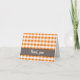 Südliches Land inspiriert Dankeschön-Karte mit "danke" in Weiß über eine braune Leinwand Textur-Illustration, auf einem orangen und weißen Gingham-Muster. Das Innere ist personalisiert mit Ihrer eigenen Dankesbotschaft. Sie können den Vorlagentext auch ganz einfach löschen, um die Karte(n) frei verlassen, damit Sie Ihre eigenen Dankesgefühle handschriftlich feststellen können. Diese Karten mit ihrem klassischen Gingham-Muster sind perfekt für Baby Shower-Feiern. Matching Postage (separat erworbene Artikel):