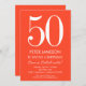 Eine schlichte und moderne orange-weiße Geburtstagseinladung für Meilenstein oder jeden Alters Geburtstag. Diese Einladung ist für jedes Alter einschließlich Meilensteine: 18. 21. 30. 35. 40. 45. 50. 55. 60. 65. 70. 75. 80. 85. 90.