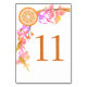 Die Tischnummern mit ihren hellrosa und orangefarbenen Blume und den Orangenfrüchten sind ideal für Hochzeiten im Frühjahr, Sommer, Hobby oder Garten. Finden Sie passende Artikel in meinem Shop.