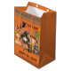 Karo diese niedliche Halloween-Orange Hexenmeisterschafts-GIFT-BAG mit Monstern, Hexe im Kürbiskleid, einem Kätzchen, einer Eule und einer Katze, die einen Besen fliegt. Dies ist ein Teil der Halloween-Monster-Sammlung. Karo für koordinierte Elemente, Sie können den schwarzen und orangen Hintergrund mischen.