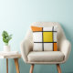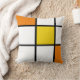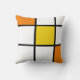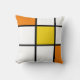 Mit diesem Kissen im Innenraum im Freien im geometrischen Mondrian-Stil mit fett orangen und gelben Quadraten und schwarzen Akzenten bereiten Sie sich auf den Sommer vor. Dieses minimalistische und moderne Design ergänzt jeden Einrichtungsstil.