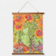 Orange Yellow Rudbeckia Painterly Blue Accent Wandteppich Mit Holzrahmen