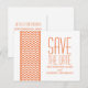 Chic und modern Zickzack Border Save the Date Postcard mit einem Zickzack Muster in Orange und Weiß. Dieses stilvolle Design Set den Ton für eine elegante Hochzeit. Einfach zu anpassen, fügen Sie einfach Ihre Hochzeitsdetails in den Textfeldern zur Verfügung gestellt. Klicken Sie auf "Anpassen", um weitere Personalisierungsoptionen zu erhalten.