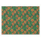 Orange Zinnia Blume, grüne Blätter auf dunkelgrün Tischdecke