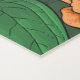 Orange Zinnia Blume, grüne Blätter auf dunkelgrün Yogamatte