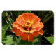 Dieser phantastische Magnet zeichnet sich durch ein detailliertes Foto einer hübsch orangen Zinnia-Blume aus. Das Foto wurde mit Makrofotografie aufgenommen und zeigt die zarte Schönheit der orangefarbenen Blätter und des gelben Zentrums dieser wunderschönen Blume.