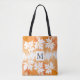 Moderne orangefarbene Ahornblattwäsche, Aquarellwäsche und Tasche mit Monogramm Tote. Es zeigt die Ränder von weißen Ahorn-Blätter auf orangefarbenen Wasserfarbenwaschen und Ihr Monogramm in einem Rahmen mit Kontur in der Mitte platziert.