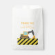 Behalt deine Gastgeschenke und Geschenke in dieser Geschenktasche! Es verfügt über einen niedlichen, orangefarbenen und grauen Bagger, ein gelb-schwarz Streifen Muster für den Hintergrund. Ideal für ein Bauthema Kindergeburtstag Party! Personalisieren Sie die Party-Nachricht.
