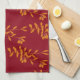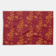 Orangefarbene Blätter der Silhouette auf rot Geschirrtuch