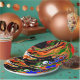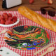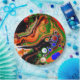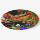 Orangefarbene, blaue, grüne, schwarze, digitale Fl Pappteller