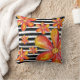 Orangefarbene Blume auf schwarzen Streifen Kissen