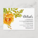 Orangefarbene Aquarellkaktus Blume Frühling und Sommer Blumen Hochzeitsdetails einfügen Karte. Es zeigt wunderschöne orangefarbene Kakteen Blume und sukkulente Blätter. Die Rückseite ist massiv grün. Benutzen Sie es als Empfang, Wegbeschreibung oder Unterkunftskarte, für Ihre Website oder Registrierung etc.
