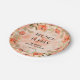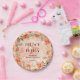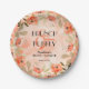 Schöne orangefarbene Blume und elegante Blätter unterstreichen diese Teller Brunch- und Bubbly-Brautparty-Papier-Teller personalisiert mit dem Namen und Party der Braut. PASSENDE Artikel in unserer Sammlung.