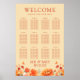 Orangefarbene Blume Hochzeit im Herbst Seating Chart. Matching-Elemente verfügbar.