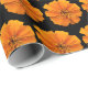 Ein wunderschönes, orangefarbenes Muster an Blume auf schwarzem Hintergrund.