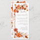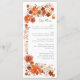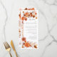 Orangefarbene Blütendecke Bouquet Wedding Menükarte