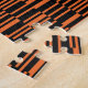 Cooles, trendy, abstraktes geometrisches Muster, das mit vielen Rechtecken in der Menge / Dichteabstraktion hergestellt wurde. Moderne, urbane, einfache, lebendige grafische Kunst in Orange und Schwarz