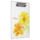Lose Aquarellkunst von gelb-orangefarbenen Blume auf einer Zwischenablage. Passen Sie Ihren eigenen Namen an. Drucken von originalen Kunstwerken, die mit Wasserfarben von Sarah Trett hergestellt wurden.
