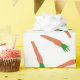 Ermutigen Sie gesunde Ernährung mit diesem Verpackungspapier, das die Abbildungen von orangen und grünen Karotten vor weißem Hintergrund zeigt. Das ganze Gewand hat einen lustigen Stil, der perfekt ist als eine einzigartige Osterpackung oder zum Verpacken von Gemüsegesendungen.