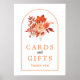 Orangefarbene Herbst-Blume und Blätter fallen erdigen Farben Karten und Geschenke Hochzeitsschild Poster. Ein wunderschönes, weißes Blumenmuster mit einem Bouquet mit Dalia und Rose Blume und Blättern in orangen Herbstfarben.