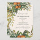 Orangefarbene Zitrusfrüchte Blumen und Blattwerk Hochzeit speichern Sie die Datumskarte. Schöne handgedruckte Aquarellfarben mit floralen Aquarellen und moderner Schriftzeichen.