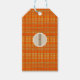 Orangefarbene Karierte und braune Kraft-Rustikale Geschenkanhänger